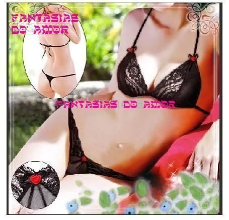 Conjunto de calcinha fio e sutiã com detalhes em renda na cor preta